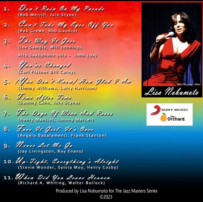 Inspired by The Jazz Masters Series Nonprofit Organization in honoring, educating and preserving the history and music of Jazz Masters in Memphis and beyond, vocalist Lisa Nobumoto produced this eleven song album (featuring the great Eric Scott Reed on piano), inclusive of twenty of the finest Jazz Masters in the U.S.!